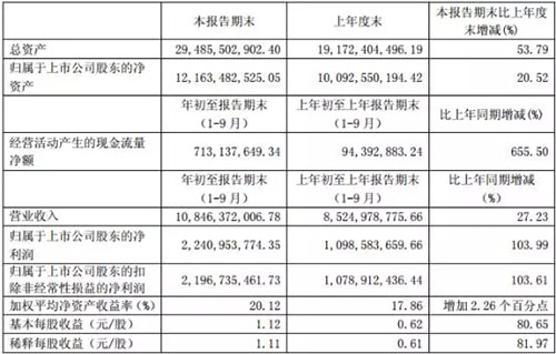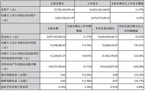 隆基股份:2017年前三季度盈利22.41亿元,同比增长103.99%