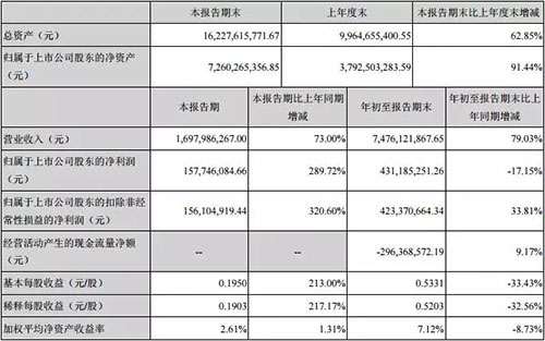 东方日升:三季度营收16.98亿,净利同比增长289%
