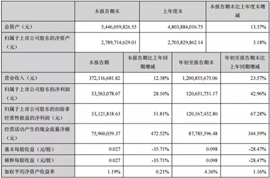 横店东磁:2017三季报净利润4.02亿,同比增长29.87%