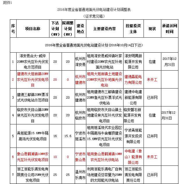 1.2016年度全省普通地面光伏电站建设计划调整表(征求意见稿)