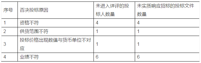 国网电子商务有限公司2017年临时增加批次物资类招标项目评标工作已结束,现将此次招标活动中否决投标事项数量统计公示如下。
