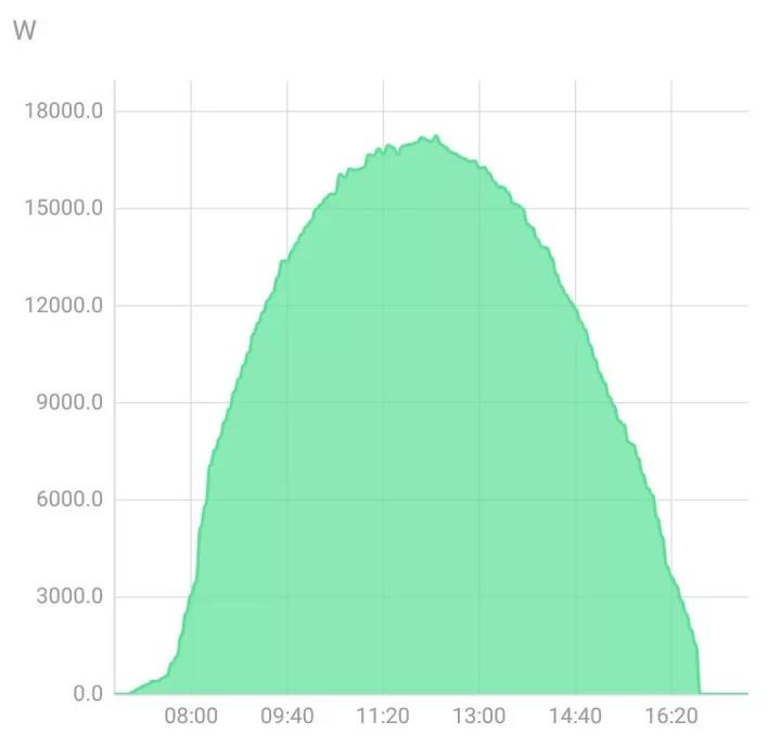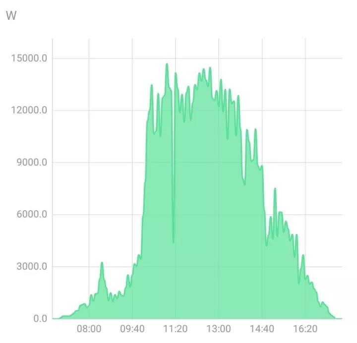 祭出我们的神器,拿出手机,查看一下今天老家屋顶光伏的光伏功率曲线图!