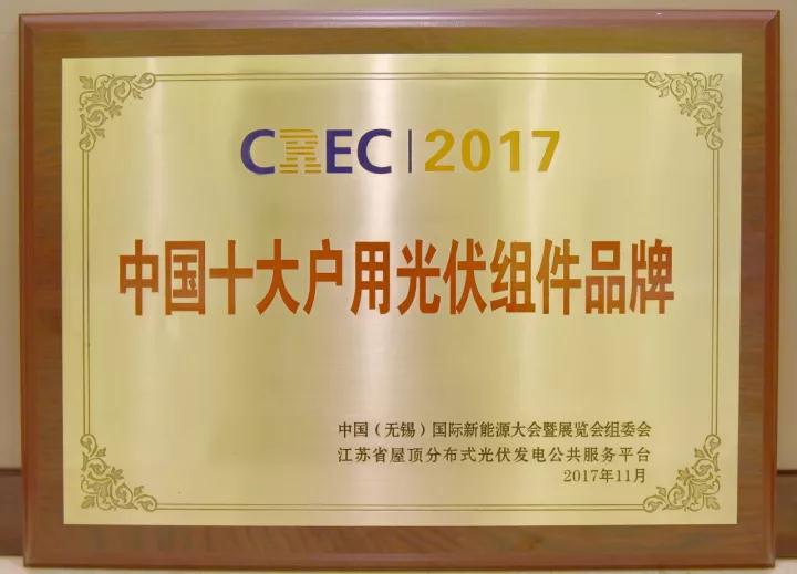 第九届中国(无锡)国际新能源大会同期,CREC2017中国十大户用光伏组件品牌颁奖典礼在11月3日落下帷幕,隆基乐叶不负众望,以票选最高成绩荣膺“中国十大户用光伏组件品牌”。