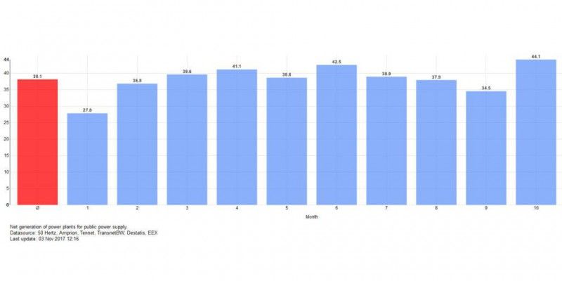 IWR表示这一新纪录的背后有许多因素,例如有利的气象条件给风电场带来了更高的产电量等。风能的产量几乎比上个月翻了一番。同时光伏发电量比一年前增加了27%,达到21亿千瓦时。但与九月相比,太阳能发电却几乎下降了三分之一。