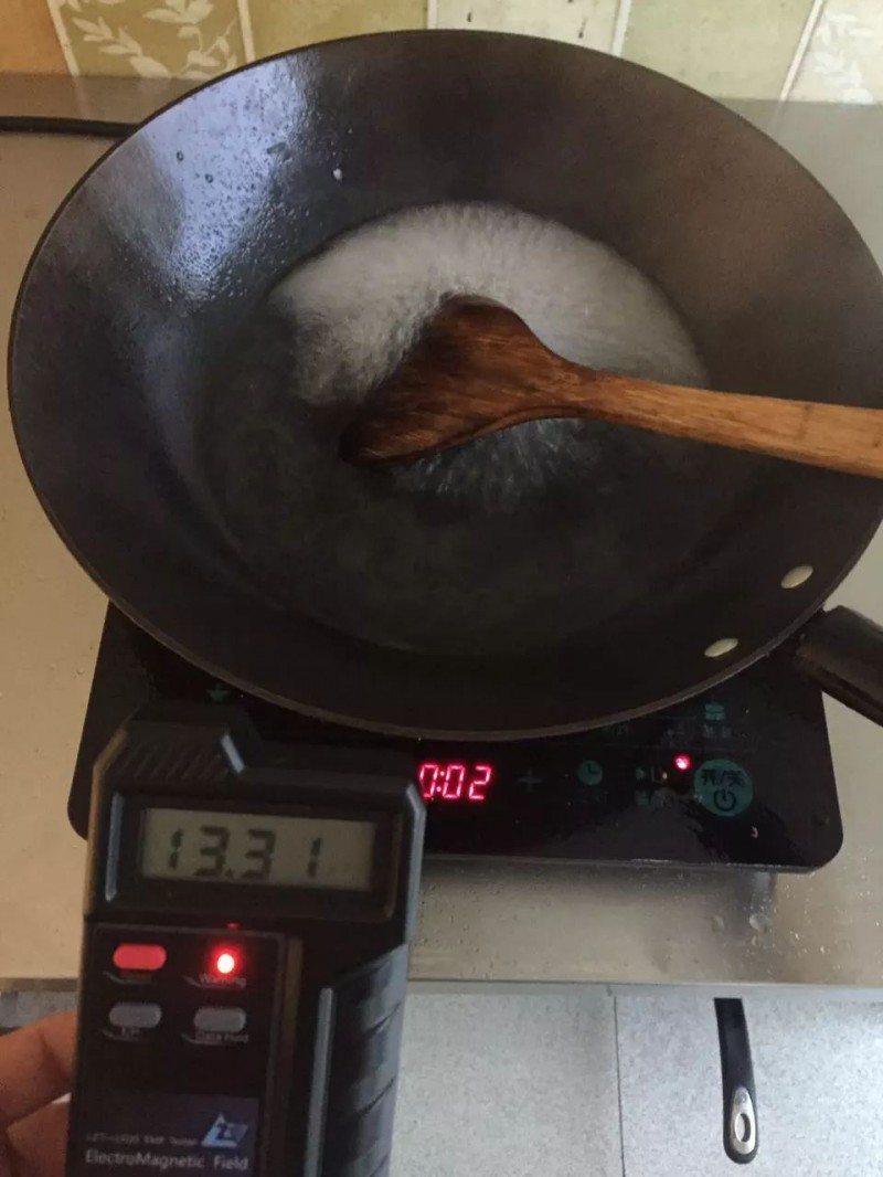 我们发现以上测试数值最大的不超过5,而且距离10CM以上都是0。这样的辐射量算大吗?有危害吗?我们来设立个参照组就知道了了,就拿家里经常使用的电磁炉试试吧~