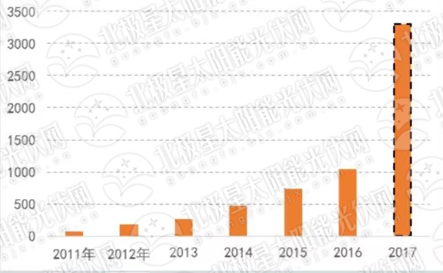 很多光伏行业专家曾说,2017年是中国分布式光伏发展元年,仅上半年分布式光伏新增700万千瓦,是去年同期的3倍,但是从我国最新的三季度数据来看,仅三季度一个季度分布式光伏新增的容量就已经超过了上半年的700万千瓦,达到了800万千瓦。所以按照这个数据估计,今年中国分布式光伏真的是元年,全年新增装机应该能够超过2000万千瓦,总装机规模就有可能达到3000万千瓦,增长速度的确是非常快。