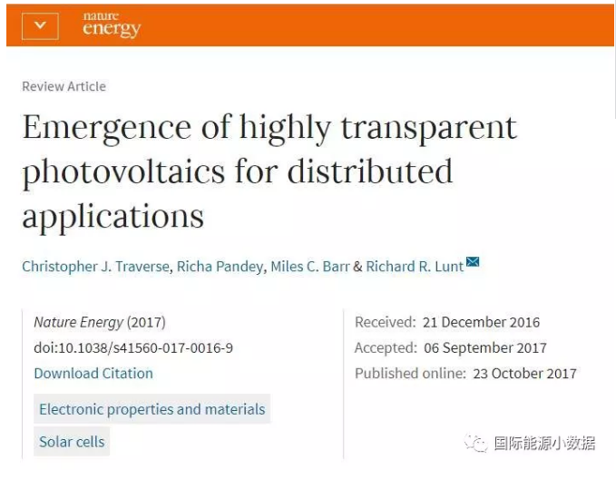 原标题:【创意】可以贴在玻璃窗上的透明光伏技术问世,足够满足美国40%的电力需求!