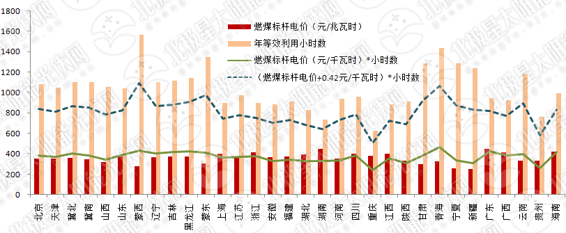各地区分布式光伏发电经济性(全额上网模式,按照70%的经营期系统效率)