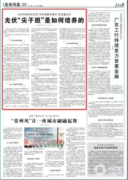 今日(11月8日)出版的《人民日报》以《山西芮城率先完成“光伏领跑者基地”全容量发电 光伏“尖子班”是如何培养的》为题,深度报道了协鑫新能源芮城领跑者项目建设的生动实践和和成功经验。以下为报道原文: