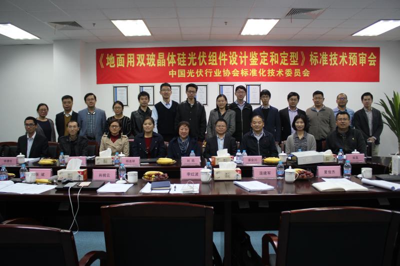 刘筠秘书长首先介绍了双玻标准立项的背景及本次会议主要内容,随后主编单位代表海润光伏介绍了标准的编制过程以及技术参数的数据依据,重点汇报了标准技术预审稿各章节内容及涉及到的征求行业意见阶段意见处理情况。