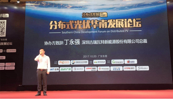 千红万紫安排著,只待新雷第一声。 10月20日,“2017分布式光伏中国行·东莞站”暨分布式光伏华南发展论坛在东莞欧亚国际酒店隆重举办。古瑞瓦特作为协办方与来自全国各地的光伏产业链供应商、投资商、开发商等600多位行业同仁共聚现场,助力华南分布式光伏高效发展。