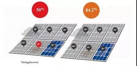 传统逆变器系统中存在的“短板效应”是造成功率输出损失的主要原因。从生产过程中产生的组件间失配(mismatch)、安装及后期维护过程中的损坏、使用过程中的阴影遮挡、污渍(动物排泄物、落叶、灰尘等等),及系统后期由于衰减程度不同,这些原因都将造成组件间的失配问题。而组件级电力电子从技术到应用上解决了光伏电站整个生命周期的组件间不匹配的问题。通过采用组件电力电子技术最大程度上保证组件输出功率,保证系统效率。通过测试及长期的数据收集,在相同条件下,组件级电力电子系统相较于传统逆变器系统,发电量可增加5-25%。