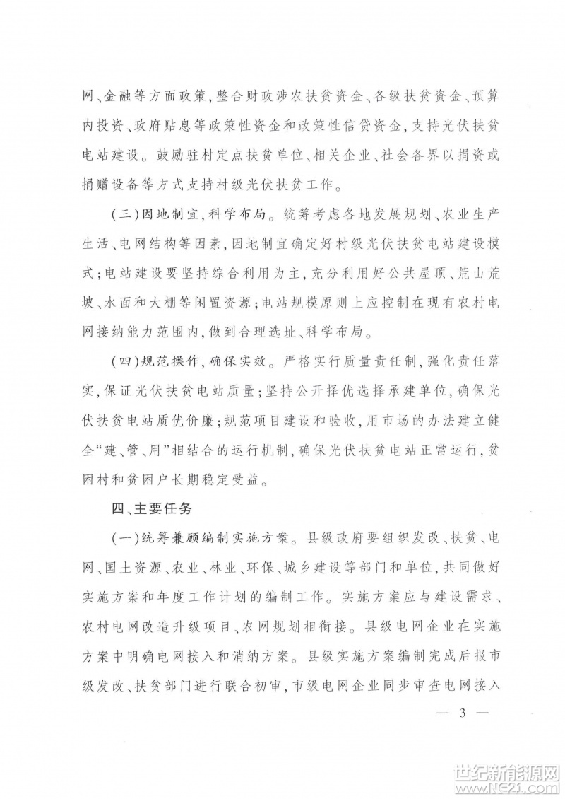 第四部分,关于扩面工程实施的主要任务。按照因地制宜,科学布局和规范操作,确保实效的基本原则,提出了统筹兼顾编制实施方案、因地制宜做好光伏扶贫电站选址工作、全面加强光伏扶贫电站建设和运营管理、多措并举筹措光伏扶贫电站建设资金、建立健全光伏扶贫电站收益分配机制五方面主要任务。