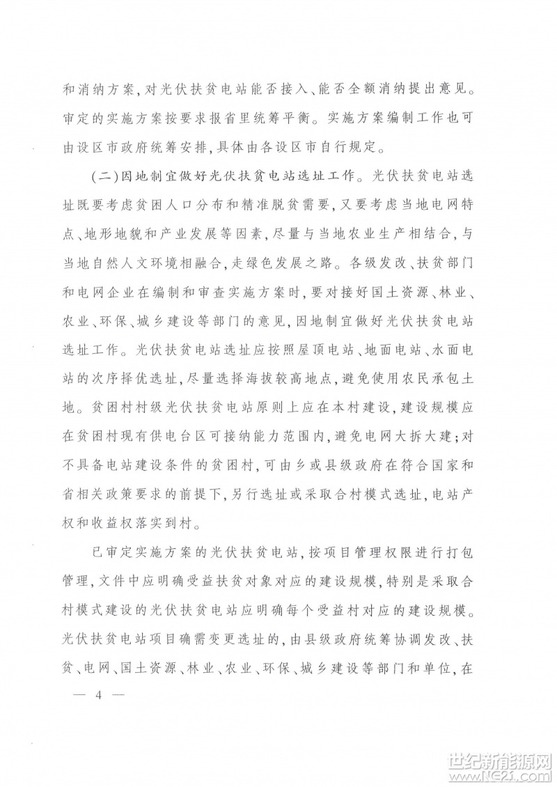 三是确保扶贫效果。为《中国农村扶贫开发纲要 (2011-2020)》扶持的建档立卡贫困村,每个村建设一个100kWp村级光伏扶贫电站,电站每年为每村增加4-5万元集体经济收入。