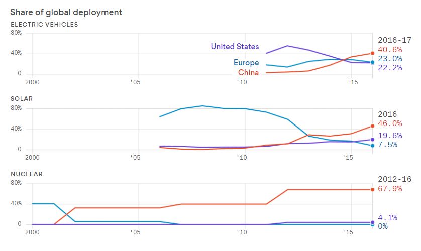 索比光伏网讯:荣鼎咨询(Rhodium Group)发现,尽管美国政治家多年来警告称,不能让中国在清洁能源行业领先,但美国在电动汽车、太阳能和核能的部署方面已经远远落后了。