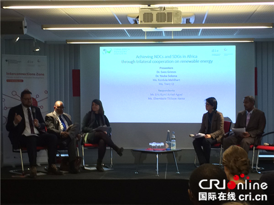 对此,来自中非可再生能源合作和创新联盟的中国企业代表也表示认同。这个由30多个中国企业成立的机构,目前已与多个非洲国家展开在可再生能源领域的交流合作。但合作过程中,他们发现双方在项目执行调研能力上的差距,而这正是德国的优势所在。如果通过三方合作增强各方能力建设,可以极大地提高合作成效,推动目标实现。