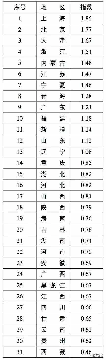 处理方法:上述三个指数直接相加获得,各省数据如下表。