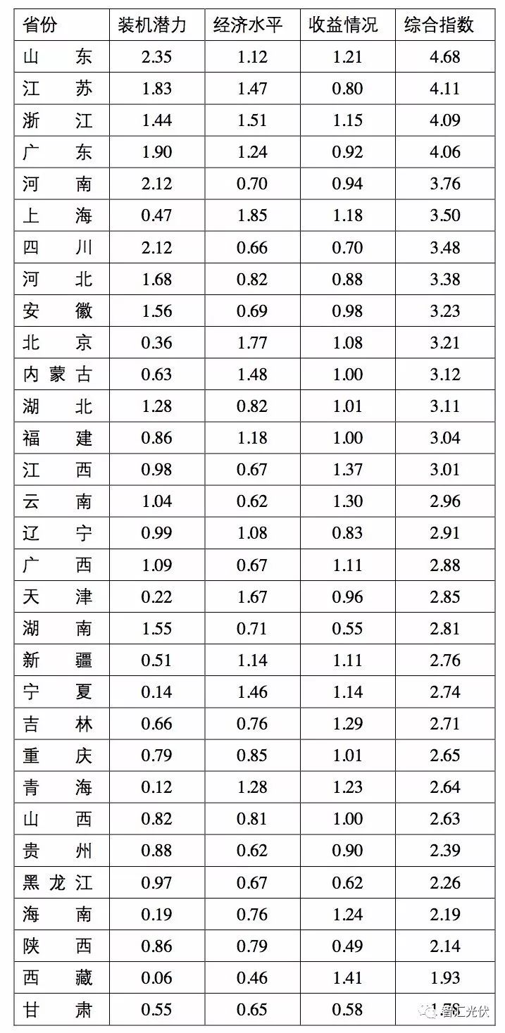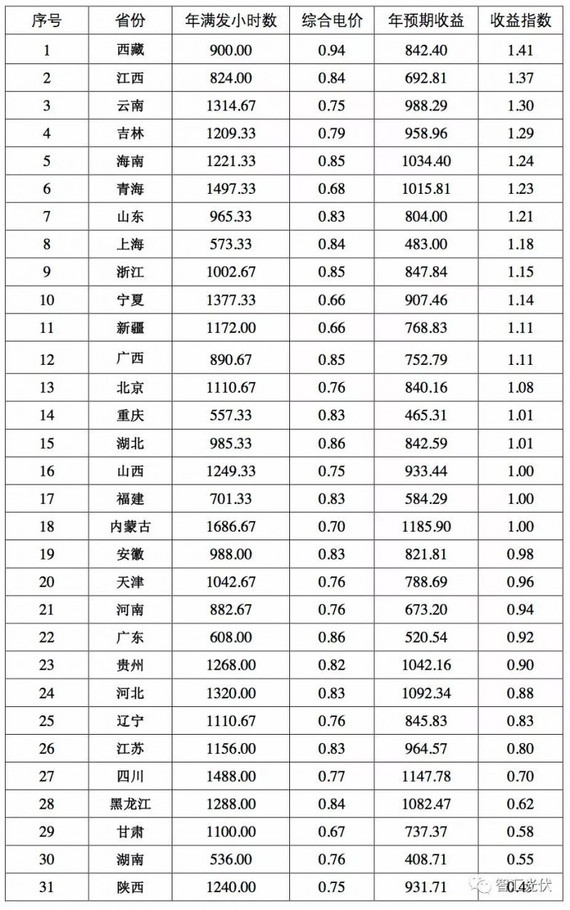指标一:各省户用项目的收益情况,简称“收益指数”
