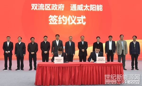 莅临现场的领导、嘉宾共同见证项目的正式启动仪式现场,双流区人民政府与通威签订了《高新技术绿色产业园区项目投资框架协议书》及《10GW高效晶硅电池项目投资协议书》;四川大学、西南石油大学、成都理工大学、成都工业学院与通威太阳能公司签订了《校企合作协议》。