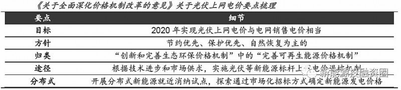 《关于全面深化价格机制改革的意见》提及2020年光伏要实现平价。2017年11月8日,国家发展改革委印发《关于全面深化价格机制改革的意见》(发改价格〔2017〕1941号),以下简称《意见》,文件第十条中明确提出到2020年实现光伏上网电价与电网销售电价相当。