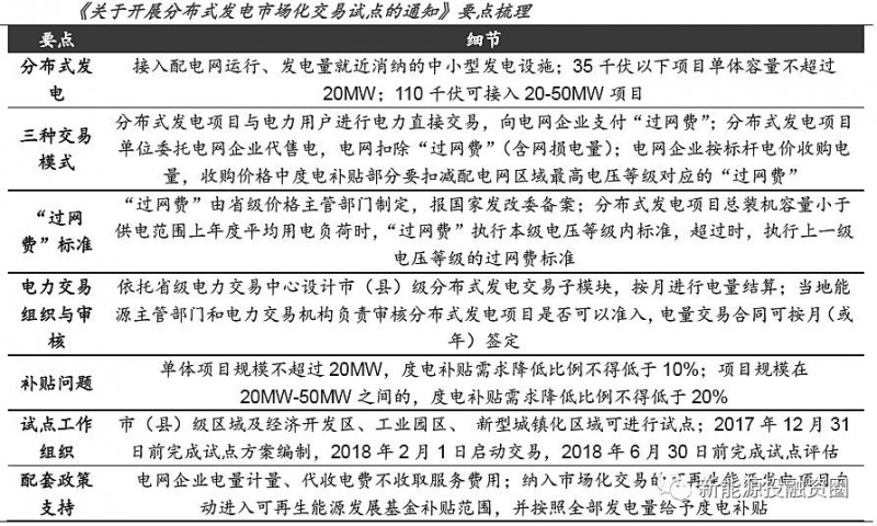 分布式发电市场化交易试点启动。2017年10月31日,国家发改委和国家能源局联合发布了《关于开展分布式发电市场化交易试点的通知》(发改能源【2017】1901号),这是继今年3月发布《关于开展分布式发电市场化交易试点的通知征求意见稿》8个月后千呼万唤始出来的正式通知文件。