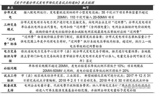 分布式发电市场化交易试点启动。2017年10月31日,国家发改委和国家能源局联合发布了《关于开展分布式发电市场化交易试点的通知》(发改能源[2017]1901号),这是继今年3月发布《关于开展分布式发电市场化交易试点的通知征求意见稿》8个月后千呼万唤始出来的正式通知文件。