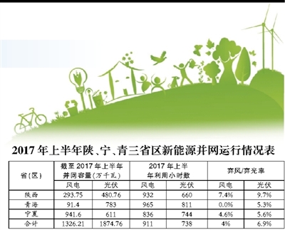 2016年三省(区)新能源消纳问题突出,陕西省全年风电弃风率6.53%,光伏弃光率6.59%;宁夏自治区风电弃风率13.30%,光伏弃光率7.15%;青海省弃光率8.33%。2017年以来,在各级电网企业的努力下,弃风弃光问题得到有效缓解。一是改变过去分省备用模式,西北全网统一安排备用,尽可能压减火电开机,增加新能源消纳空间;二是通过开展跨区交易,促成华中抽蓄电站低谷时购买西北风电,增加新能源交易电量;三是实施新能源在全网范围强制消纳,将新能源外送优先级提到跨区直流配套火电之前,发生弃风弃光时,强制压减配套火电出力,优先输送新能源。2017年上半年,宁、青两省(区)弃风弃光率都有明显的下降,宁夏弃风率下降8.7个百分点,弃光率下降1.55个百分点,青海弃光率下降3.03个百分点。