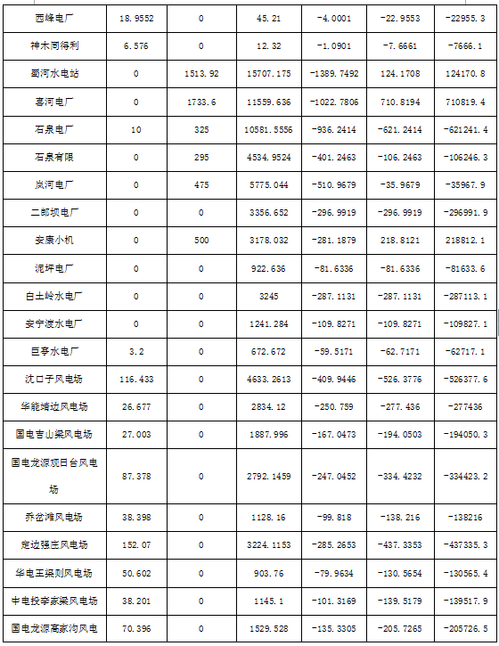 附件:2017年9月份陕西电网“两个细则”考核补偿结果