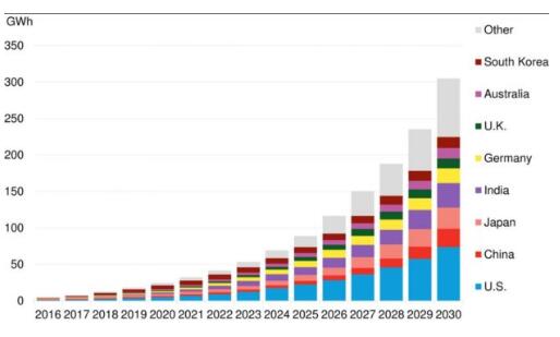原标题:到2030年全球储能规模达125GW 美国占1/4
