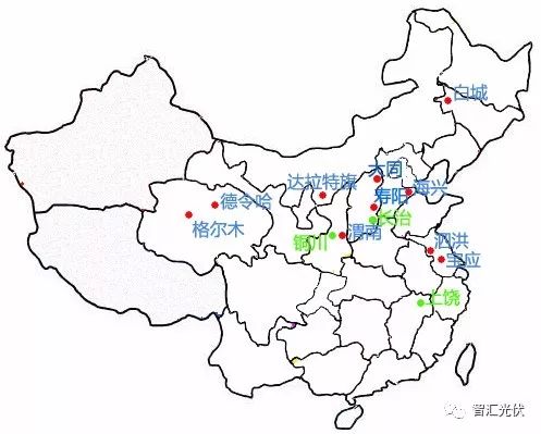 13个场址分别位于8个省,涉及除南方电网之外的全部区域电网。除白城、上饶之外,其他所有场址都分布在北纬36.5°±4°的范围之内,即集中在我国中高纬度地区。