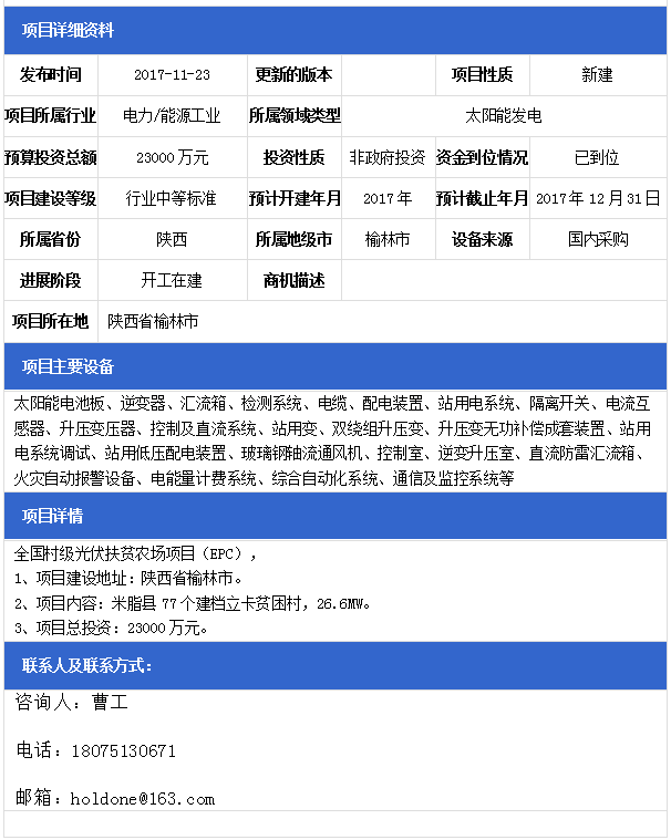 近期,多个光伏项目发布EPC总承包招标,除了国内市场外,海外市场也有新动态。国电投200MW光伏项目EPC工程总包招标11月26日,云南省迪庆州香格里拉市其宰200MW光伏项目EPC工程总承包发布招标公告,招标人为国家电投集团云南国际电力投资有限公司。国能四川1.15GW光伏项目一期EPC总包招标11月28日,国能大渡河公司阿坝茸安1150MW光伏项目(一期)EPC总承包工程公开招标,项目单位为国能大渡河流域水电开发有限公司。