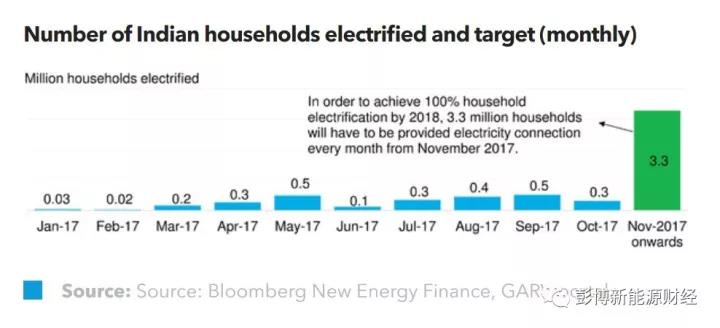 印度政府还计划额外拨款25亿美元用于农村电网建设,并宣布计划在2018年12月31日前实现全国100%的家庭都能通电。对比此前的目标,新计划的实现提前了三个月,而且电网接通速度需要提高10倍。