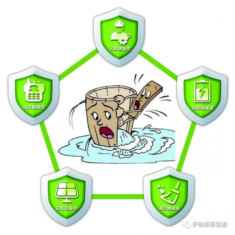 萨纳斯电站5个健康度指标的关系就如同人的五个手指,相互关联缺一不可,设备健康度和通讯健康度是基础,损耗健康度是运营的整体效果,清洁健康度是灰尘遮挡的程度,运营健康度是提升电站发电量的关键。