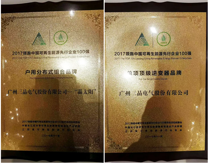 随着户用光伏大潮的席卷下,国内涌现出了众多优秀的光伏企业,他们都在积极的推动着中国光伏清洁能源的发展,而三晶电气便是其中的一家。上周,三晶电气在2017第七届加强应用长江经济带“一带一路”分布式能源创新发展论坛暨2017领跑中国可再生能源先行企业100强评选活动中获得“户用分布式组合品牌”、“单项顶级逆变器品牌”两项大奖,三晶品质与实力再次得到证明!