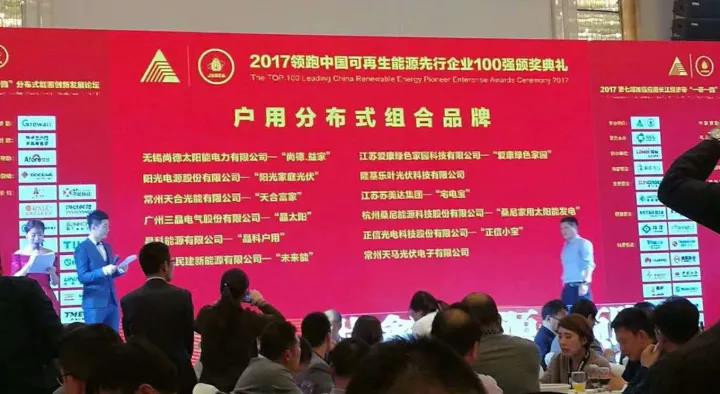 11月24—25日,2017第七届加强应用长江经济带“一带一路”分布式能源创新发展论坛暨2017领跑中国可再生能源先行企业100强评选活动在南京隆重召开,吸引了各级政府主管部门、行业协会、能源投资公司、科研机构及产业链各环节企业等国内外近500名领导、专家、企业家和嘉宾,共同就影响光伏产业发展的主要热点、难点和焦点问题进行了探讨,并在业内众多优秀企业中评选出了2017领跑中国可再生能源先行企业100强。