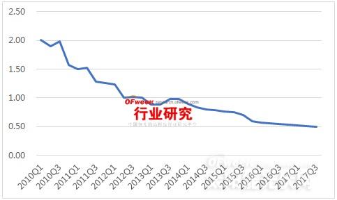 图表2:历年中国光伏度电成本统计(单位:元/千瓦时)