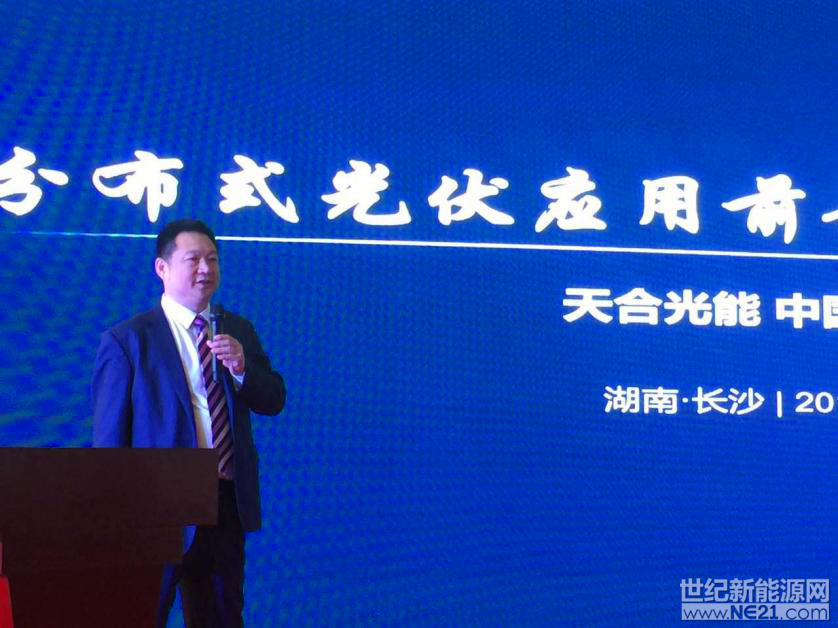 论坛由国家发改委国际合作中心国际能源所所长王进主持,针对光伏产业发展的政策扶持,产业发展趋势,光伏扶贫、光伏技术发展方向,分布式光伏发展现状、存在的问题、痛点,应对策略,国际国内市场壁垒等行业普遍关注的十大议题进行研讨交流,以期寻求解决方案,向政府部门提供政策建议。 天合光能(北京)系统集成有限公司总经理杨军、天合光能(北京)系统集成有限公司湖南公司总经理吴玉玲受邀出席。杨军作为天合光能商用团队的负责人发表演讲,从光伏电站的产品、安装、运维、收益、环保效应等方面,说明专业的工业级电站对于光伏扶贫的重要意义,分享了天合商用在光伏扶贫领域的探索和经验。 精准、长效、稳定——光伏扶贫就要务实 杨军在演讲中表示,“天合光能商用光伏自设立之初,便携带工业4.0时代的先进基因。天合商用集合天合自身的20年光伏行业经验积淀、领先的科研能力、国际顶级的组件生产工艺,以及互联网、物联网、等时代特质,在技术控主创团队的持续打磨下,锻造‘天合光能商用智慧光伏工程平台’,以全新的视角审视行业及终端用户需求,为商用光伏领域输出工业级数字电站。”
