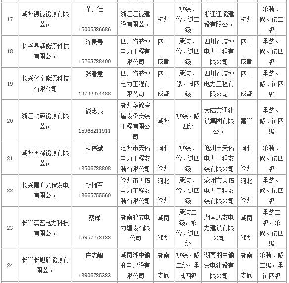 长兴县家庭屋顶光伏规范企业名单(第二批)