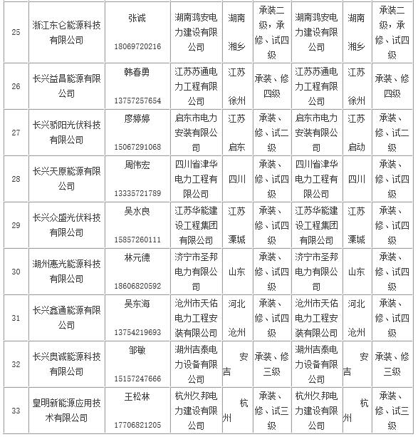 长兴县家庭屋顶光伏规范企业名单(第三批)