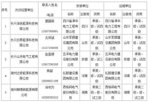 长兴县家庭屋顶光伏规范企业名单(第五批)