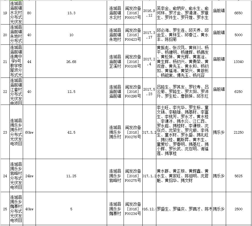 附件:连城县光伏扶贫项目申报奖补汇总表(第二批)