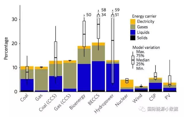 我们知道,建设和运行各种电站本身也是需要耗能的,那么相对于电站的产出而言,各类电源的“隐含能耗”(embodied energy use)是多少呢?根据德国波茨坦气候影响研究所(The Potsdam Institute for Climate Impact Research, PIK)在《自然》杂志发表的文章,从全生命周期来看,煤电厂发电产出的11%相当于煤电厂本身建设和燃料供应的能源消费。换句话说,对煤电厂而言,每投入1单位的能源可产生9单位的能源(相当于能源回报率为9:1)。核电厂的隐含能耗为5%(能源回报率20:1);而光伏的隐含能耗为4%(能源回报率为26:1),风电的隐含能耗更低,仅为2%(能源回报率44:1)。