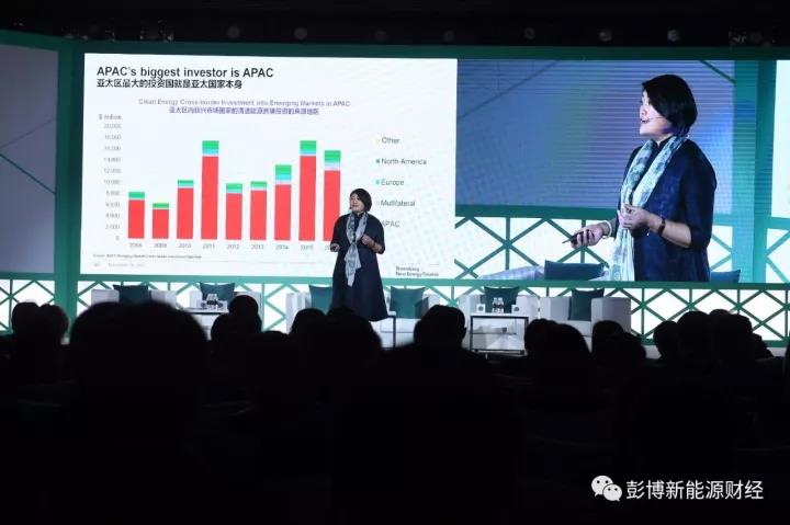 2017彭博未来能源亚太峰会期间,彭博新能源财经中国区研究主管吕天菲进行了"海外投资的未来"的主题演讲。