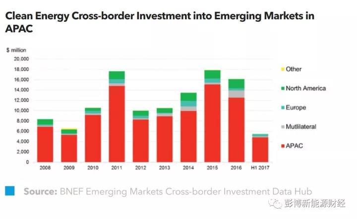 2008年以来,在亚太地区吸引的清洁能源领域的所有跨境投资中,75%的投资来自其他亚太地区国家
