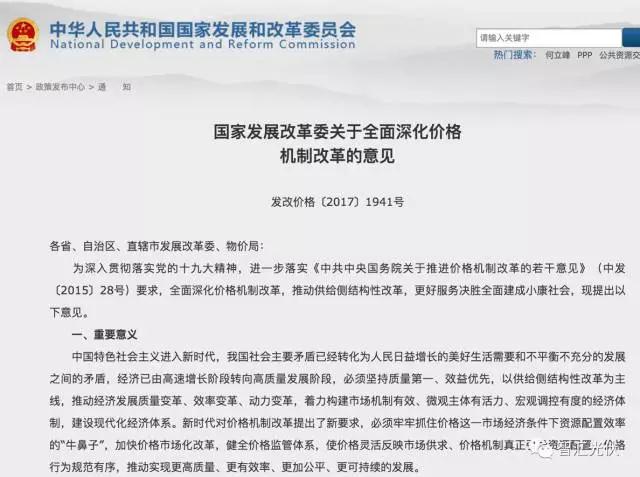 在之前国家发改委下发的《关于全面深化价格机制改革的意见》中提出: