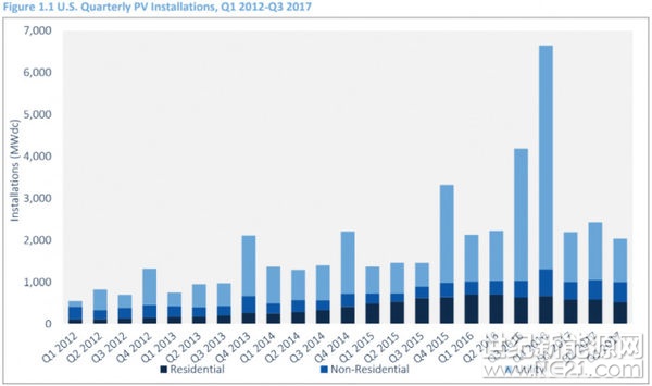 根据GTM Research的报告,非住宅太阳能光伏是太阳能市场中唯一预计在2017年实现增长的部分。报告指出,这一增长是由于项目被迫“在利率和激励结构改变之前在特定市场进行安装”等。