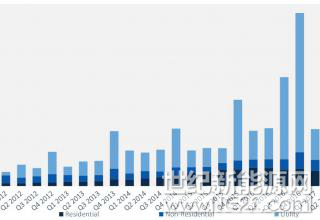 2017年第三季度,公共事业规模项目占光伏装机总量的51%;非户用光伏项目(包括工/商业发电系统、公益项目和社区太阳能项目)装机量为481MW,同比增长22%。加利福尼亚州、马萨诸塞州和纽约州第三季度都实现强劲增长,同时明尼苏达州受社区光伏项目推动创下最高季度装机量。第三季度全美社区光伏项目同比增长近50%。