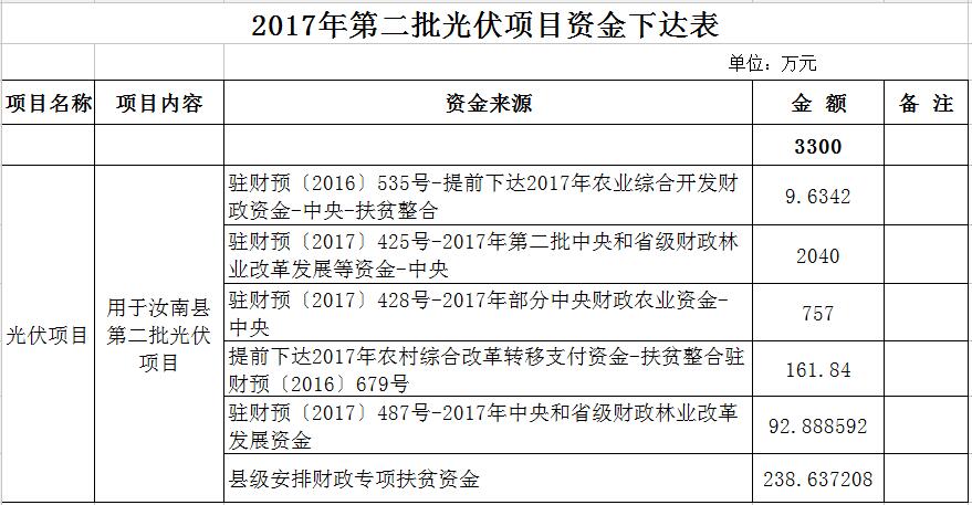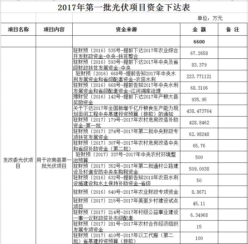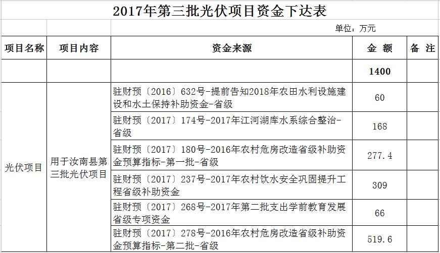 原标题:关于下达2017年汝南县第一批光伏项目资金的通知