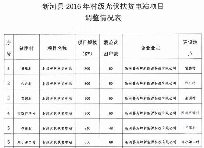 原标题:关于新河县2016年村级光伏扶贫电站项目部分内容进行调整的复函