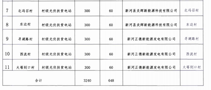 一、同意新河县2016年村级光伏扶贫电站项目投资企业由原申报的一家增至两家:新河正德新能源发电有限公司、新河炎辉新能源科技有限公司(详见附表),并分别承担后续扶贫工作,其他内容不变。